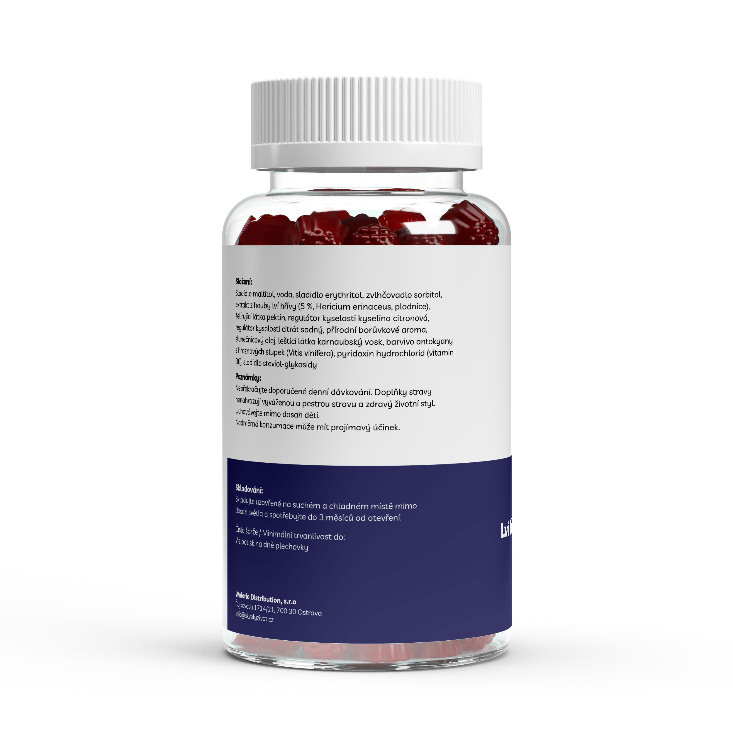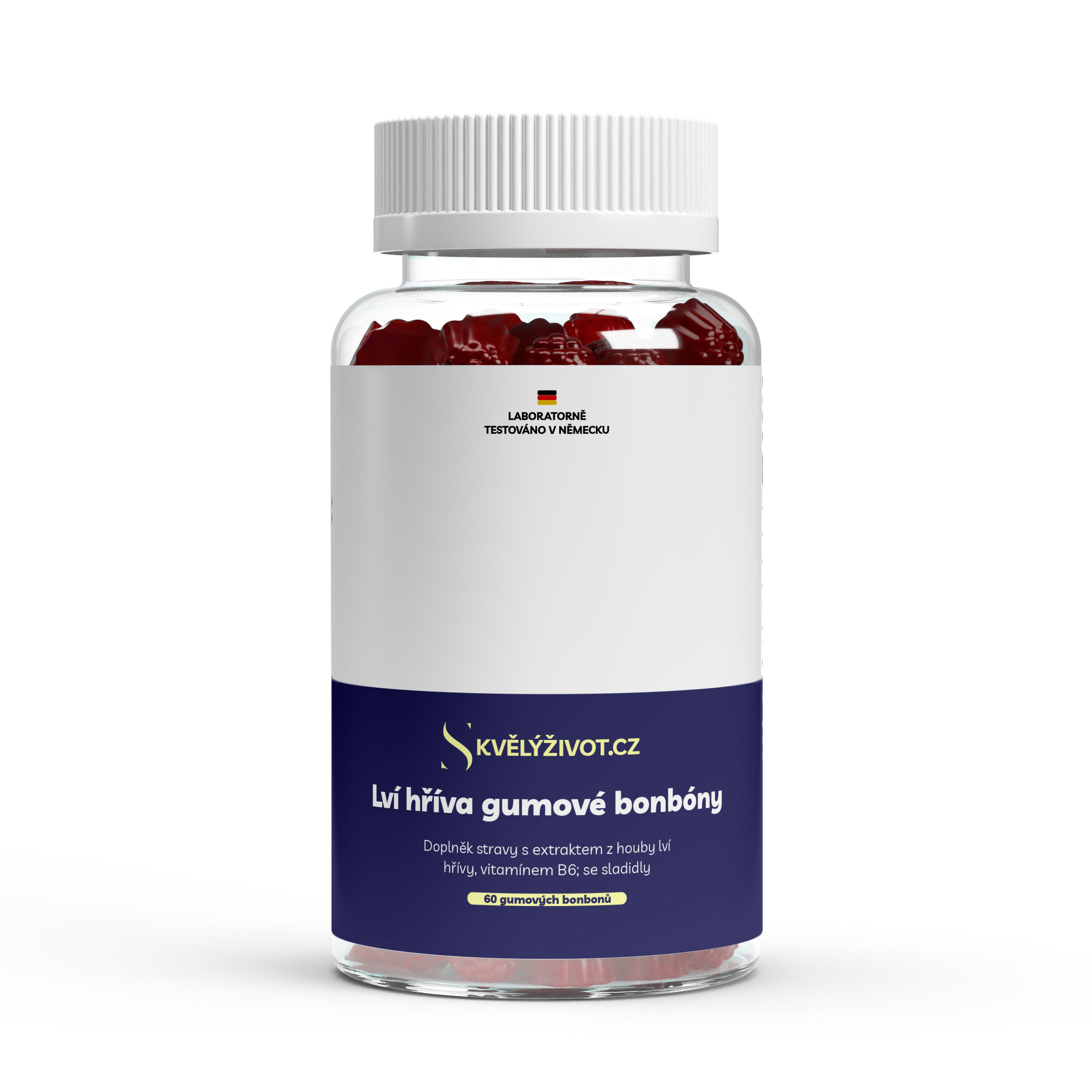 Lví hříva (Hericium erinaceus) je funkční houba, která si získala oblibu jako přirozený nootropikum. Společně s vitamínem B6 tvoří ideální kombinaci pro podporu mozkové činnosti, soustředění, nálady a nervové rovnováhy – a to v podobě chutných veganských gumídků bez cukru.